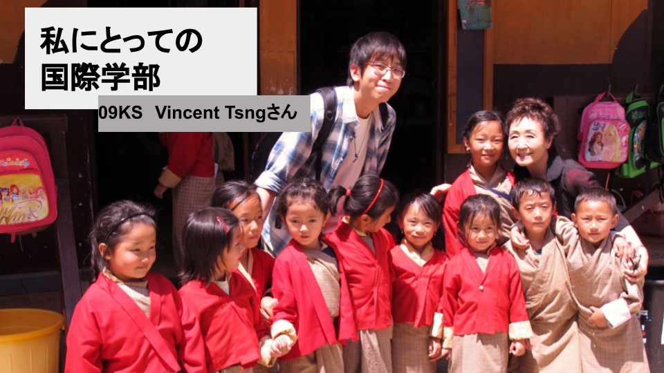 私にとって国際学部は「自由」でした。先生方も自由で、個性が強くて、自分の研究に夢中になっていて、学生も色んな考えを持っていて、そんな色んな人と話す中で、色んな考え方を身に着ける事ができました。それらは、自分のとても大きな成長に繋がりました。