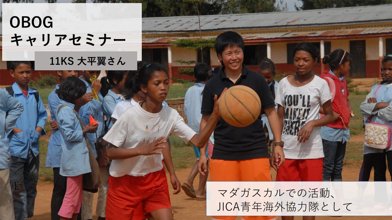 国際学部主催キャリアセミナーで11KSの大平翼さんが、新卒で2年間活動していた青年海外協力隊について、お話をしてくださいました。