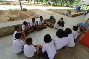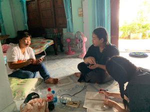 M.Y.:ムアンブア村の小学校は子ども5,6人に対して、私たちが1人か2人入って質問したんだけど、結構大変だった。通訳はバディの子がしてくれたね。