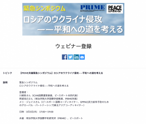 3/3(木)【PRIME共催緊急シンポジウム】ロシアのウクライナ侵攻——平和への道を考える