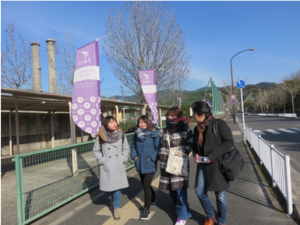 ・天理教という今まで関わる機会が全くなかった宗教を通して、日本の中でもまだまだ私にとっては未知の世界があることがわかり、カルチャーショックのような気分になった。ある宗教を熱心に信仰する日本人がこんなにたくさん見たのは初めてで、大変驚いた。商店街の人々とたくさん話をする機会があったが、皆さんそれぞれ知り合いで、違う職業、年齢層でも相互に協力してまちづくりを進めていることがわかった。天理は天理教しかないまちというイメージが世間一般には根強く浸透してしまっているが、私たちは今回3日間の滞在だけでもおいしいお店や素敵なゲストハウスなどを知ることができた。宗教以外の魅力をこれからも発信して、多くの人々に訪れてほしいと思った。そのために、これからはSNSやインターネットの力を駆使していく必要があると感じた。