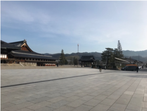 最初に、天理教の本部神殿を見学した。まず、本部神殿の大きさにとても驚いた。建物は、神社に似ている外見であったが、どこか異なるようで不思議であった。