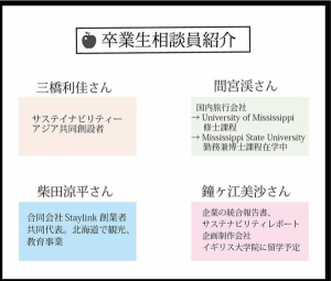 第1回に続き、様々なジャンルで活躍されている素晴らしい卒業生相談員の皆様にご参加いただきました。