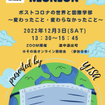 2022年10月5日 / 最終更新日時 : 2022年10月6日 yisa 最新のお知らせ 2022Reunion 開催! 早いもので今年も国際学部Reunionの時期になりました! 12月3日(土)13:30〜15:30 オンライン開催予定 プログラム詳細は近日公開! どうぞお楽しみに! またよりReunionを盛り上げるべく、企画委員も募 […]